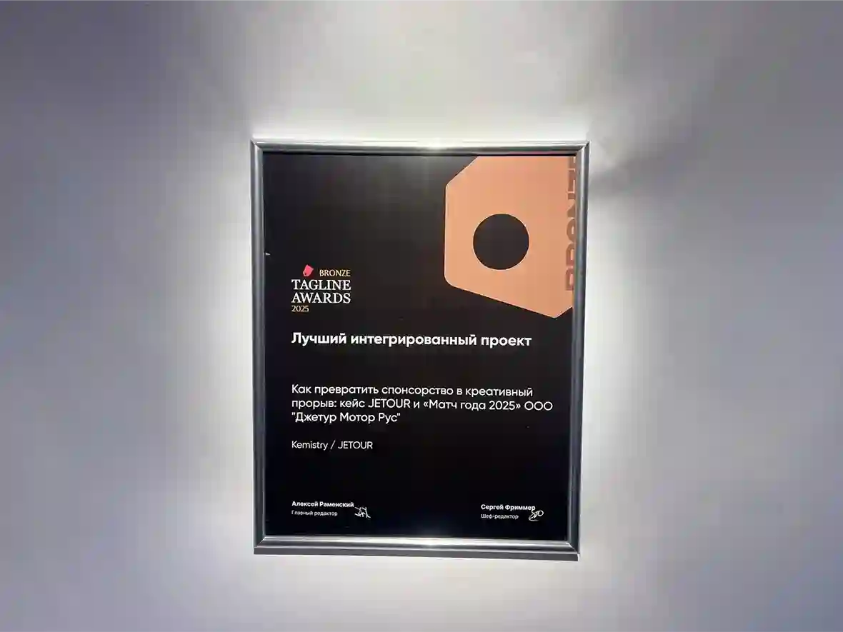 Бренд JETOUR завоевал две бронзовые награды Tagline Awards 2025 – крупнейшей digital-премии Европы. Интеграция JETOUR в проект «Матч года 2025. Все звёзды хоккея» стала победителем в номинациях «Лучший интегрированный проект» и «Digital + офлайн, лучший интегрированный проект» подтвердив эффективность креативного решения, объединяющего офлайн-эмоции и digital-инструменты.